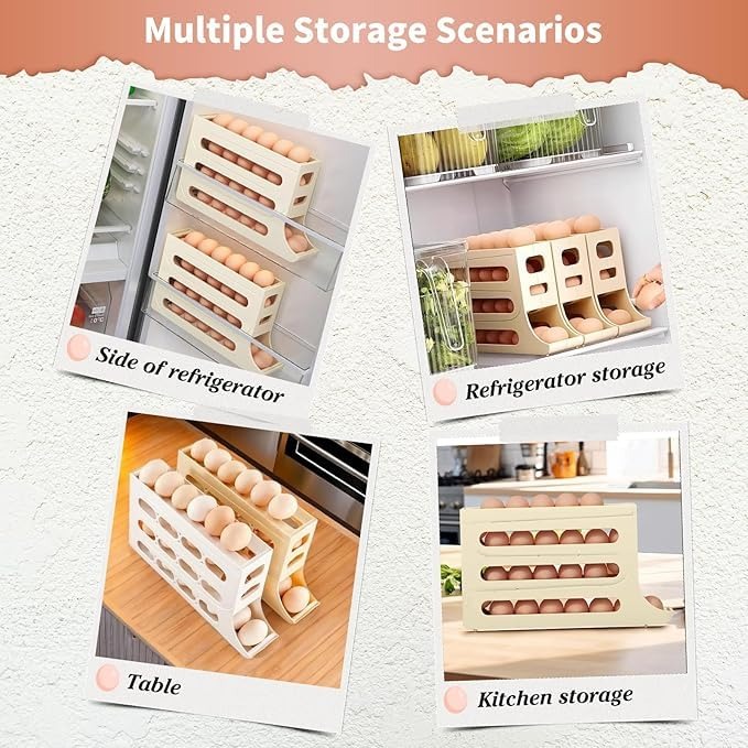 Made with durable, food-grade material, this organizer is lightweight yet sturdy, offering long-lasting use. The slide or roll-down design makes egg picking effortless, ensuring you always use the oldest egg first, reducing waste.